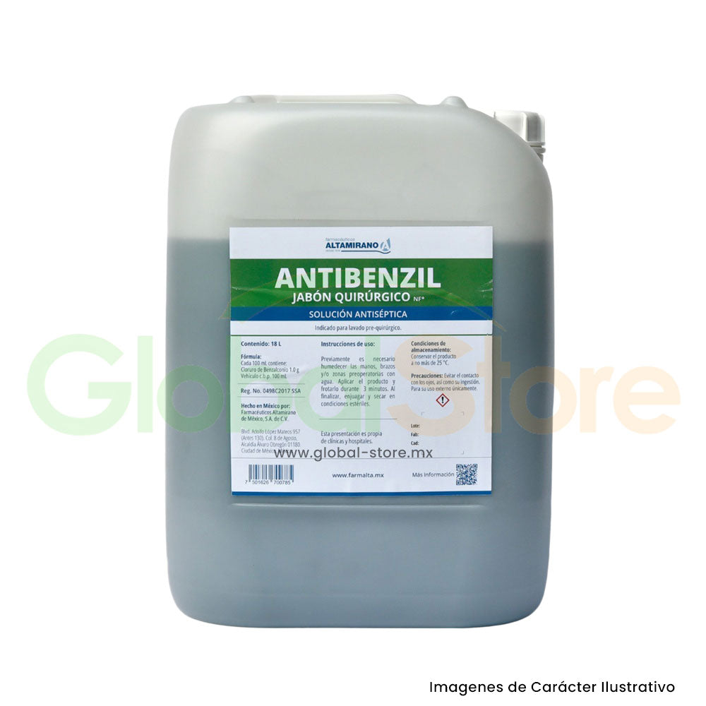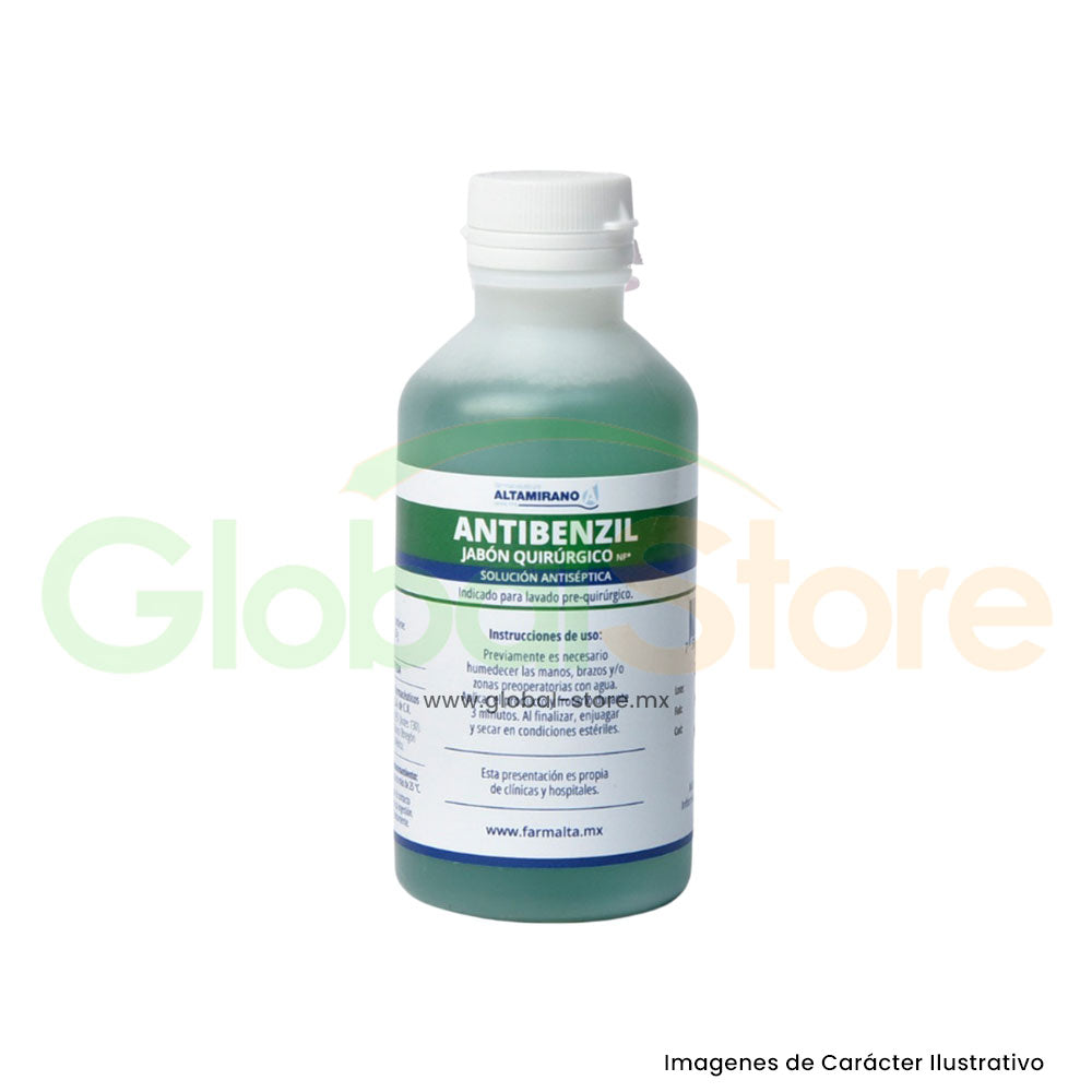 El Jabón Quirúrgico Antibenzil Altamirano es para uso pre-quirúrgico con Cloruro de Benzalconio al 1%. La Vía de Administración es cutánea, es decir, es seguro para la piel.